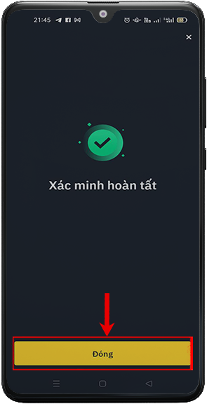 14、Sau khi xác thực xong, ấn đóng để chờ quá trình được xét duyệt