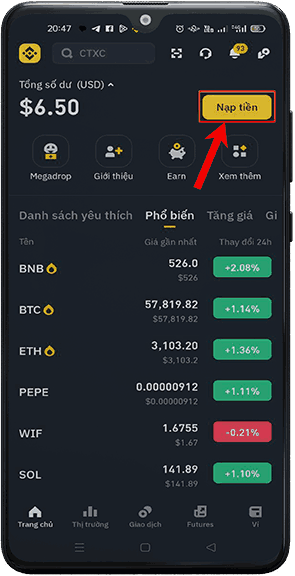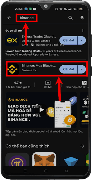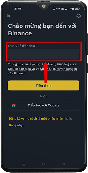 3、Cài đặt xong, vào ứng dụng Binance đăng ký tài khoản bằng Email hoặc số điện thoại