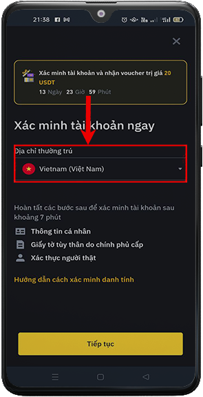 6、Chọn Việt Nam để bắt đầu xác minh tài khoản