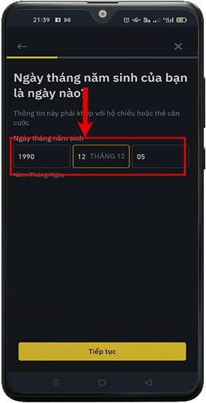 8、Chọn ngày tháng năm sinh của bạn trùng với căn cước công dân